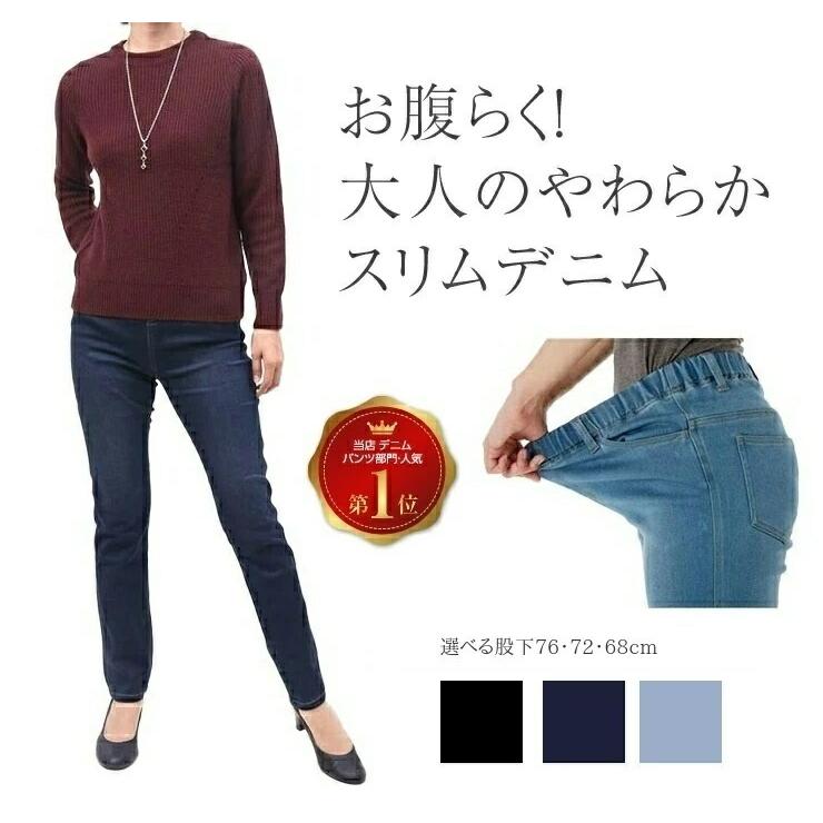 デニムパンツ レディース ウエストゴム ジーンズ ストレッチデニム ウエストゴム ジーパン 総ゴム デニムファッション 春 スキニー 綿73 Le 41 お腹が楽な美脚パンツ通販いろどり 通販 Yahoo ショッピング